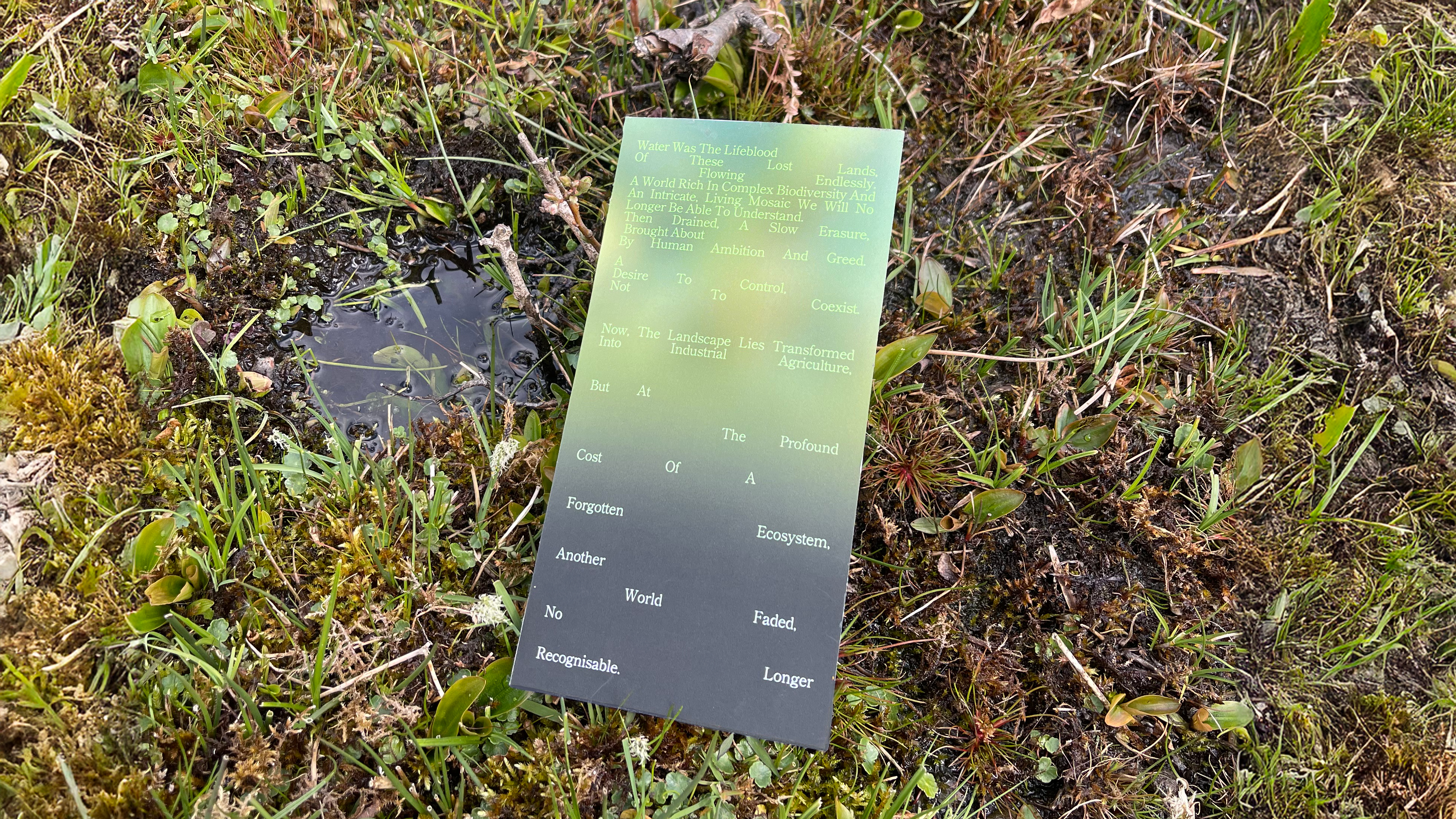 Once spanning 1,200 sq miles of winding waterways, reedbeds, and peat bogs, the Fens were a vibrant, water-shaped world, where water was the lifeblood that sustained an intricate tapestry of life. Over centuries, engineered drainage erased more than 95% of this rich ecosystem, turning it into flat, monocultural farmland. This project uses water and peat - two things that make the Fens distinct - from one of the last surviving Fen as a medium to show how the hidden biodiversity that once thrived has faded away, creating an exhibition all about the story of this loss, taking people in an immersive journey of the timeline of the fens.