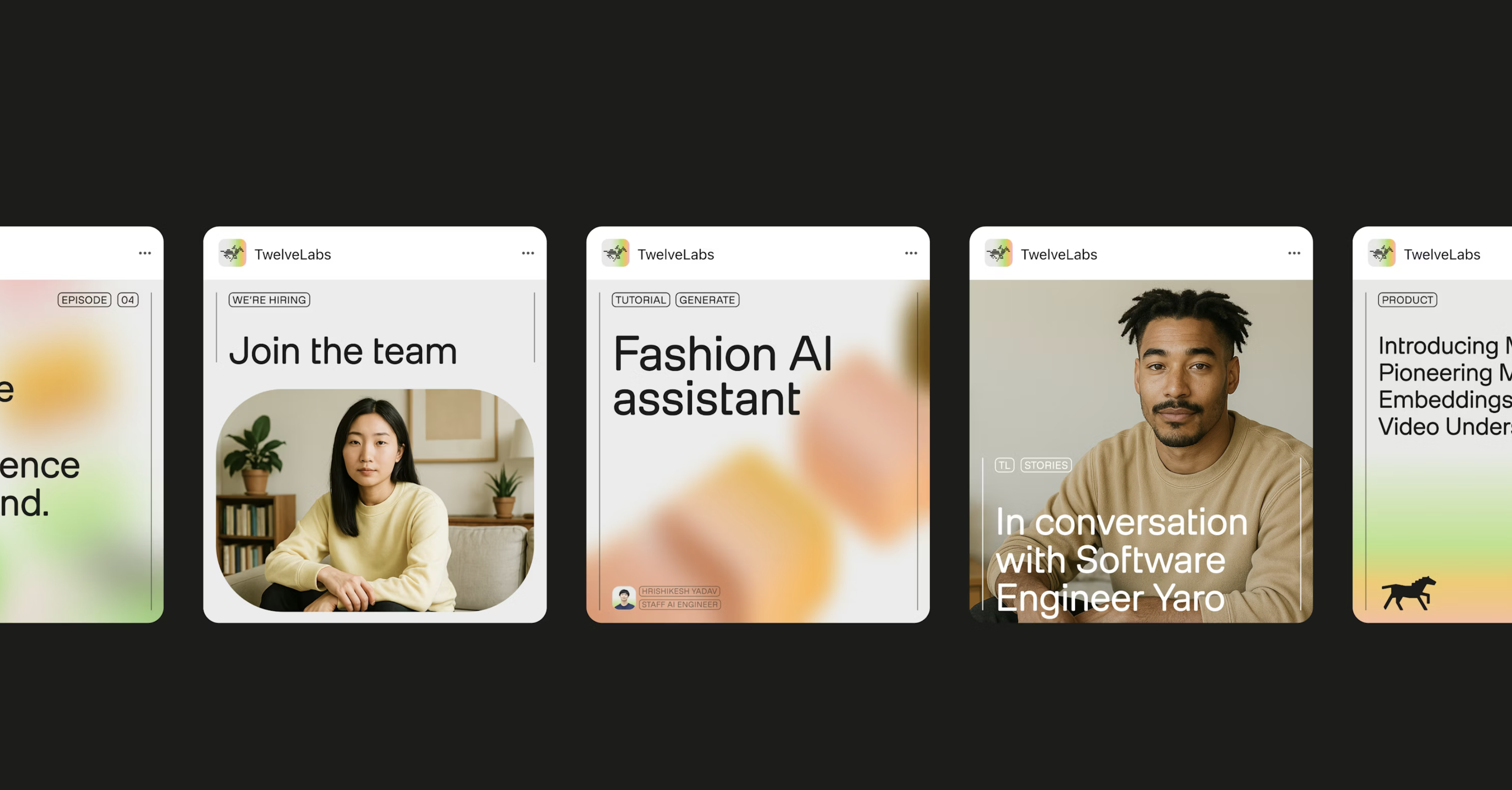 To see is to understand. TwelveLabs sees video like humans do. Understanding it means more than breaking it into frames, tags, or transcripts. Video is continuous. Meaning unfolds over time, across movement and context. When these elements are separated, understanding is lost. TwelveLabs approaches video differently. Instead of treating it as a timeline, it understands video as a volume. Sound, visuals, text, motion, and context are held together as a single spatial system that can be navigated and understood as a whole. This idea became the foundation of the identity. If video is perceived spatially, the brand should be too. Colour, 3D form, motion, and typography work together as one system. Time becomes space. Events become structures. Information appears as visible threads rather than abstract outputs. As complexity grows, the system scales with it, remaining clear, legible, and human-readable.